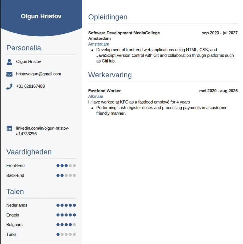 I'm a passionate software developer student at Mediacollege Amsterdam, specializing in front-end development with a interest in robotics.